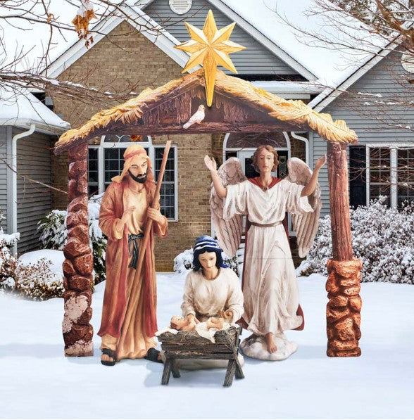 Try this new way to display a beautifully detailed and colorful outdoor nativity for church or home set.