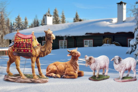 * Kneeling Shepherd {30.78" Height x 20.28" Wide} * Sheep {18" Height x 17 1/4" Wide} * Standing Ram {17 1/2" Height x 17 1/4" Wide} * Ox {20" Height x 23 1/4" Wide}